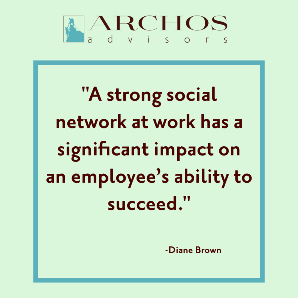 In our work with organizations, it is not uncommon for us to get asked about topics such as onboarding, promotions, and ways a company can set its employees up for success. The resources we often see are lists and education surrounding the “knowledge” or “skills” one needs to possess to be successful, and those are important. However, setting up the individual with the social network required for them to be effective is just as important. A strong social network at work has a significant impact on an employee’s ability to succeed as well as an employer’s ability to retain that individual. This is why organizations should proactively help team members foster key connections.
