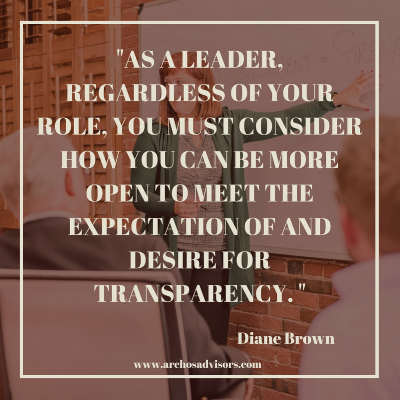 As a leader, regardless of your role, you must consider how you can be more open to meet the expectation of and desire for transparency. Whether it relates to specific organizational or team goals, financial targets, or financial statements, the more information you share that helps people feel aligned with the organization and have a “line of sight” to their maximum contribution, the better.