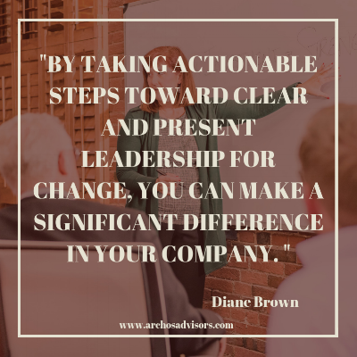 Finally, set an expectation that this person sponsors the change from inception to implementation and holds everyone accountable. By taking actionable steps toward clear and present leadership for change, you can make a significant difference in your company with incredible results!