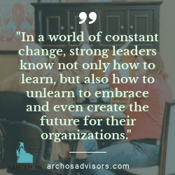 The ability to unlearn is a lesser-known concept that’s rarely spoken about; however, it is a critical component to success. As professionals grow both as individuals and within their careers, they are shaped by their background, experiences, and beliefs. Over time, while this collective wisdom is beneficial, it can also be inhibiting. If we get too attached to specific ways of thinking or processing, or if we begin to make assumptions, we may become blind to opportunity, or apply concepts to current situations that are not the most effective. The best leaders in a dynamic marketplace are able to “unlearn,” or not be constrained by the past, and are open to making space for new or potentially different ideas, models, or approaches.