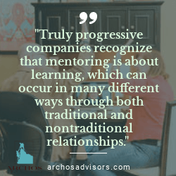 However, truly progressive organizations have gone back to the origins of mentoring and the traditional description above. These companies recognize that mentoring is about learning, and learning can occur in many different ways through both traditional and nontraditional relationships. Two such examples of these nontraditional relationships are: reverse mentoring and reciprocal mentoring.