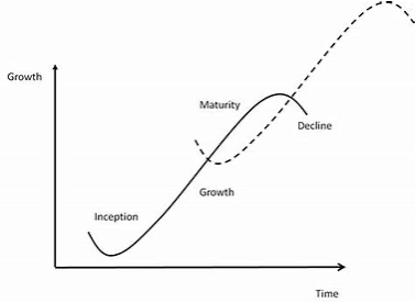 In his research, Handy highlighted that successful organizations grow over time in a series of S-curves (also referred to as Sigmoid Curves and shown in the graphic on the right). Each S-Curve represents a period of growth – from the inception of the curve which is the entrepreneurial phase, through a steady growth phase up through maturity where things start to level out, and ultimately the decline of that growth curve. He found that the “secret to constant growth is to start a new Sigmoid curve before the first one peters out.” And that is the essence of next curve leadership, being attentive to the need for and intentional about starting a new growth curve before the point of maturity and decline of your current growth curve.