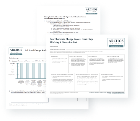 Successfully navigating organizational change is one of the most important skills in any professional’s toolkit. Equip yourself with the essential tools for successful organizational change. Our complimentary resource bundle includes the Individual Behavior Change Tips, Leadership Alignment Discussion Tool, and our Individual Change Analysis and Action Planning tool. These proven resources will help you gain alignment, drive individual behavior change, and achieve better outcomes.